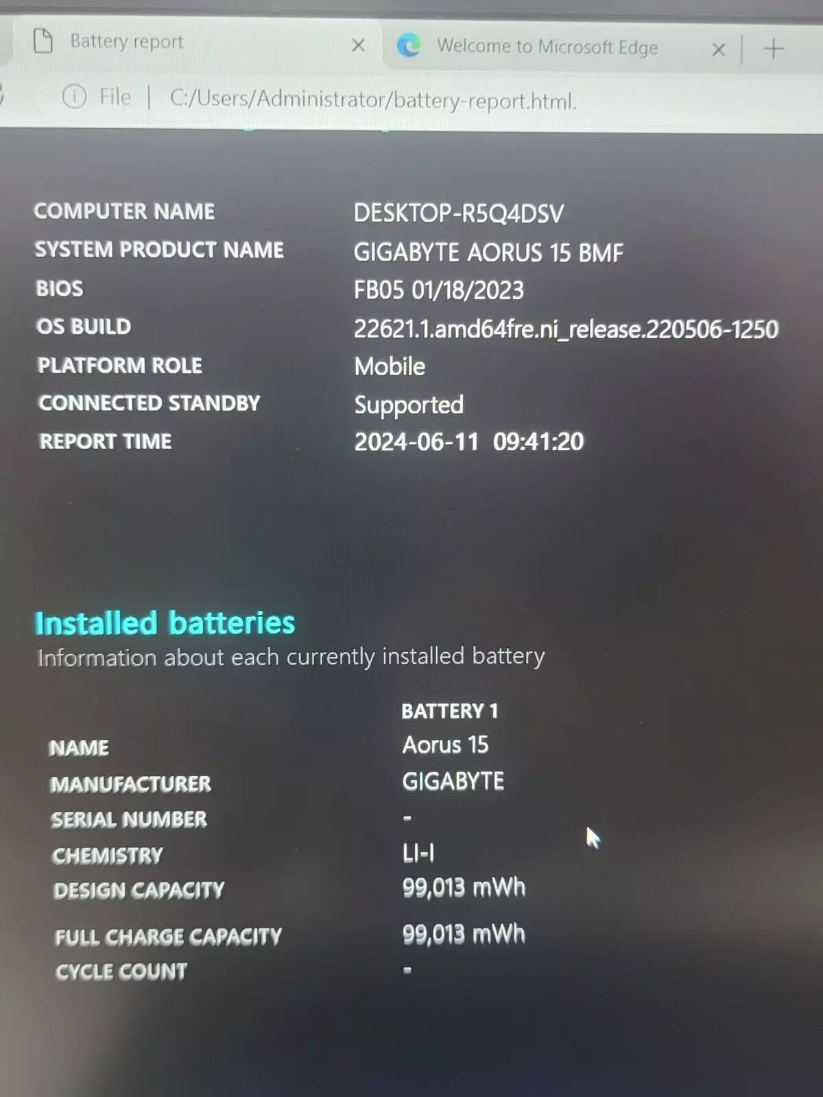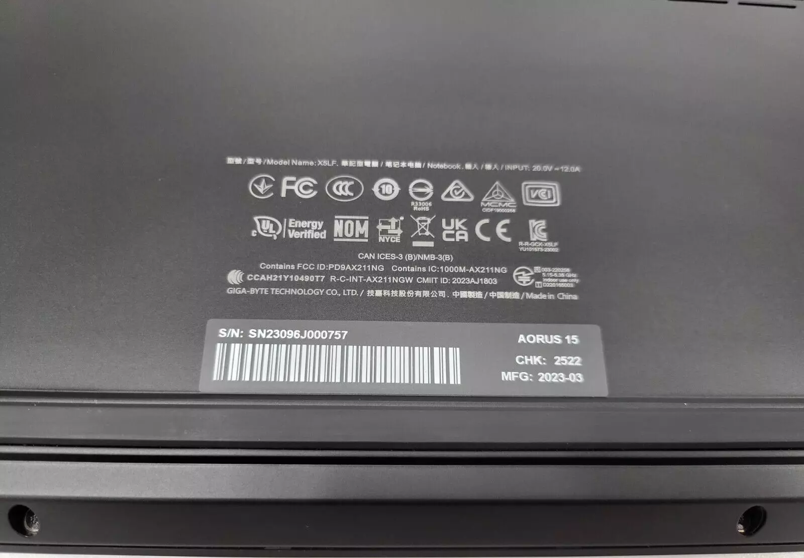 Model: GIGABYTE AORUS 15 BMF X5LF